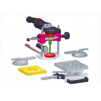 - A swivel and turnable rail with 2 adjustable stops helps to set the hole at the exact distance to the edge, ideal for exact serial drilling