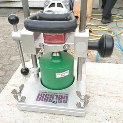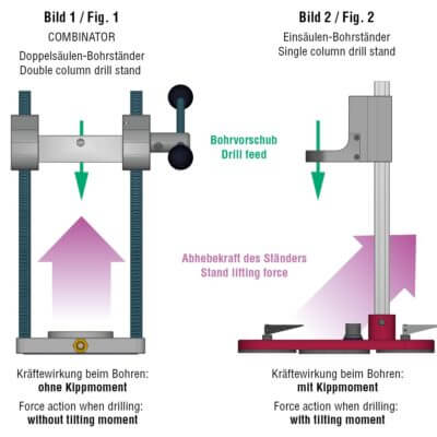 Usually, drill stands have only one drill column when used for working on stone. The design of this system means though that tilt forces work against the stand and the load on the suction cups is not equal.