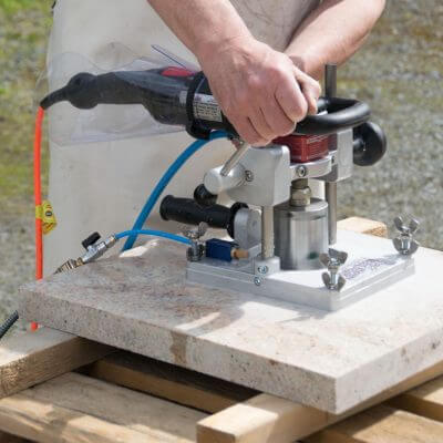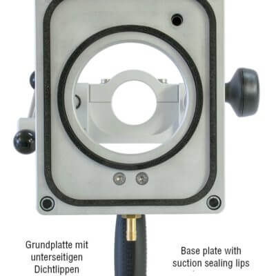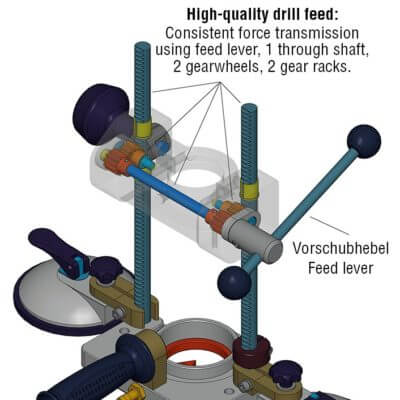 Usually, drill stands have only one drill column when used for working on stone. The design of this system means though that tilt forces work against the stand and the load on the suction cups is not equal.