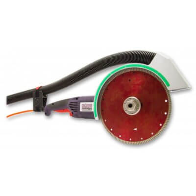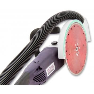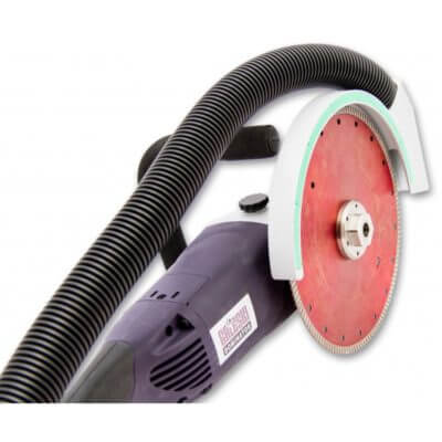 Professional stone cutter with extraction unit and vacuum cleaner connection. The large safety cover for saw blades up to Ø 250mm means you can cut to 75 mm depth.