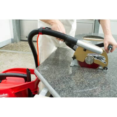 - The extraction hose is connected to the electrical cable by means of a Velcro fastener and does not disturb during the cutting process