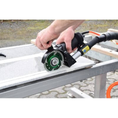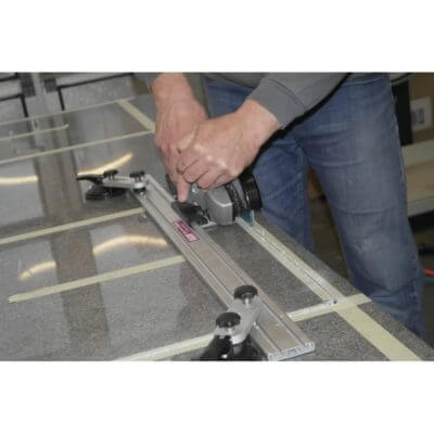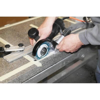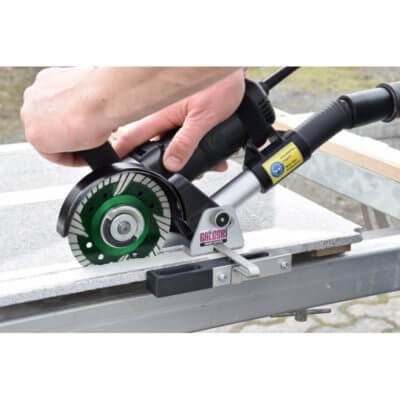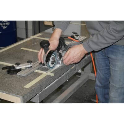 - The guide plate enables a precise, accurate cut and has a felt coating to protect the stone surface.