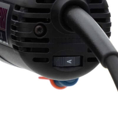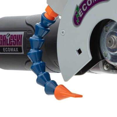 Rubber power cord 4m, personal protection switch PRCD or CEE plug, water hose 2.5m with brass coupling, water regulating tap, link hose, adjustable protective hood with removable front cover, flange, and clamping nut, spigot wrench, handle, splash guard, in a carton.